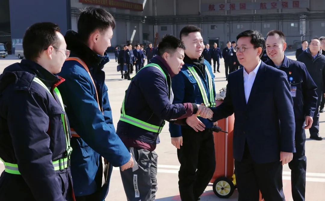 2月3—4日,農(nóng)歷大年初六、初七,中航工業(yè)黨組副書(shū)記、總經(jīng)理魏應(yīng)彪一行前往中航工業(yè)駐西安地區(qū)相關(guān)單位,調(diào)研重點(diǎn)項(xiàng)目和型號(hào)的研制、生產(chǎn)、試飛情況,并先后前往中航西飛、一飛院、試飛中心和民機(jī)試飛中心,向假期中值守一線奮戰(zhàn)的科研人員和干部職工致以誠(chéng)摯的問(wèn)候和美好的祝福。